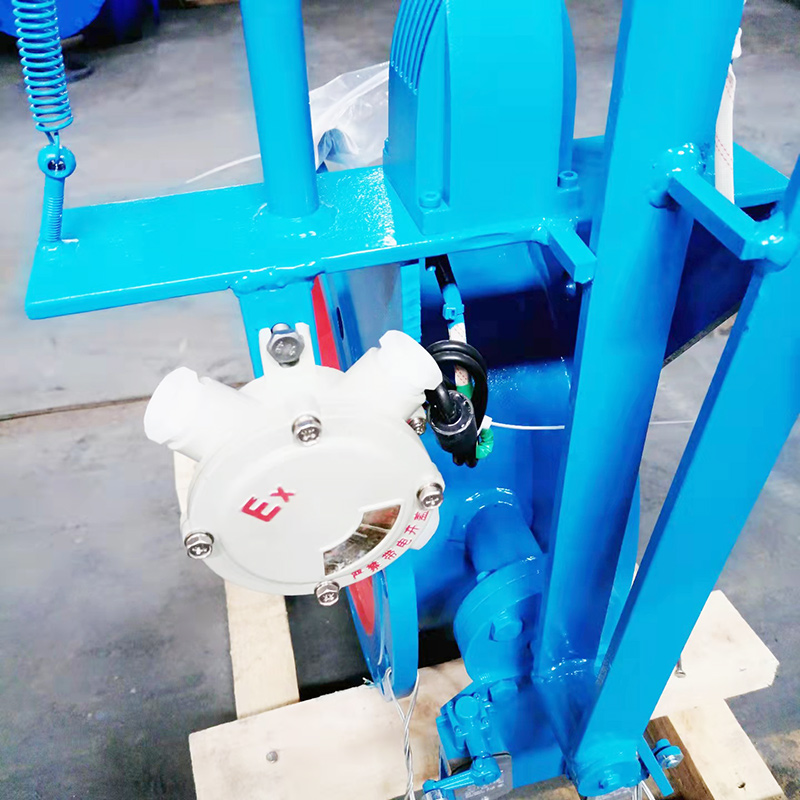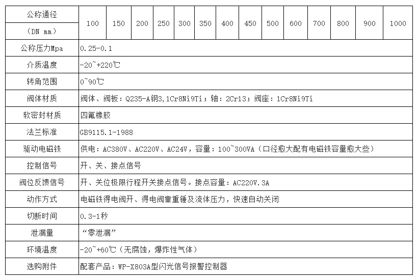 DMF-0.1由密封性能良好的防爆電磁機構、鎖定機構、蝶閥、重錘及重錘臂等部件組成。閥門開啟時,重錘臂處于豎立位置。電源接通,重鍾臂被鎖定機構鎖定,管道正常輸氣。當管道內(nèi)介質(zhì)壓力低于規(guī)定值或系統(tǒng)出現(xiàn)異常須立即切斷介質(zhì)時,可通過相應的控制回路使電磁機構斷電,解除鎖定。重鍾臂及閥板在重力的作用下,依順時針方向落下,閥門關閉。需要恢復供氣時,將重鍾臂連同重鍾按逆時針方向轉至升至似豎起位置,鎖定機構復位,此時行程開關的接點閉合,電磁機構得電,重鍾臂被鎖定,閥門又呈開啟狀態(tài)。電源系統(tǒng)意外斷電時,切斷閥會快速切斷。 通過控制電路與其中它的電氣設備進行聯(lián)鎖運行,切斷煤氣,以滿足生產(chǎn)系統(tǒng)的安全要求。功耗低。工作能耗一般為20W~40W,發(fā)熱量小,無噪聲,對于電力系統(tǒng)瞬間斷電(<0.5秒)有較強的抗干擾能力。
